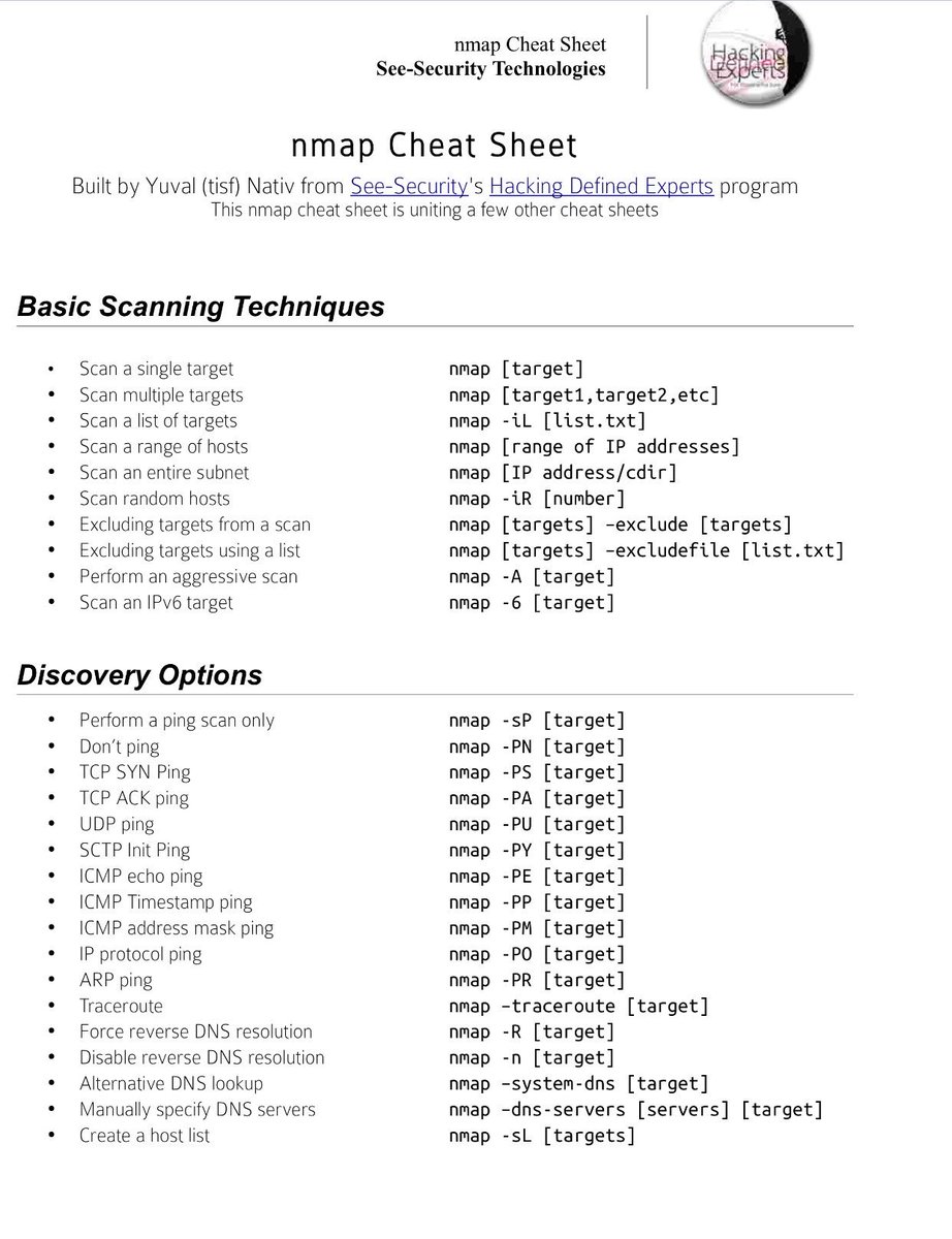 Emad Shanab أبو عبد الله On Twitter Nmap Cheat Sheet Https T Co Mdqisgyrqs Twitter
