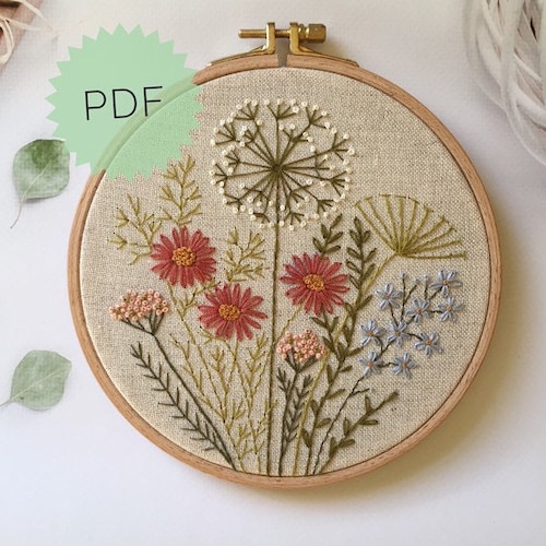Embroidery Autumn Flowers And Herbs Pattern 5 Botanical Fall Etsy
