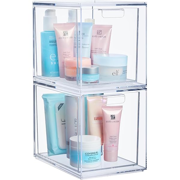 Ameitech Stackable Cosmetic Organizer Drawers Acrylic Clear Makeup Organiser Vanity Container Drawer For Cosmetics Skin Care Hair Accessories Bathroom Counter Or Dresser Pack Of 2 Amazon Co Uk Beauty